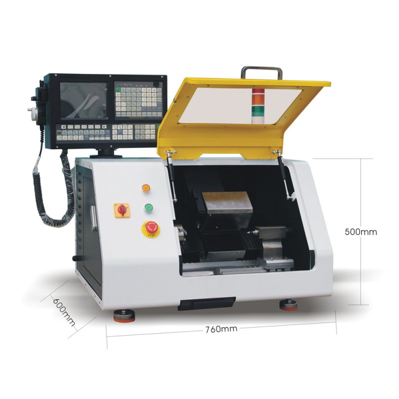 桌面型斜床身结构、使用220伏电压、配置高精度H级等磨直线导轨、高精度C3级研磨滚珠丝杆;搭载980TB工业级数控系统、8工位刀库;执行通用标准G代码编程,支持M代码及S代码,兼容FANUC,三菱G代码和多种CAD/CAM软件(MasterCAM、UG、Solidworks、Fusion360、Hypermill、Powermill等编程软件);主要加工材料:铜、铝合金、PVC塑料、有机玻璃等。 |